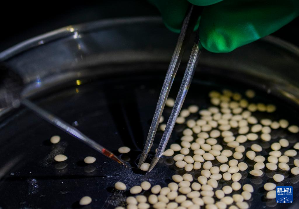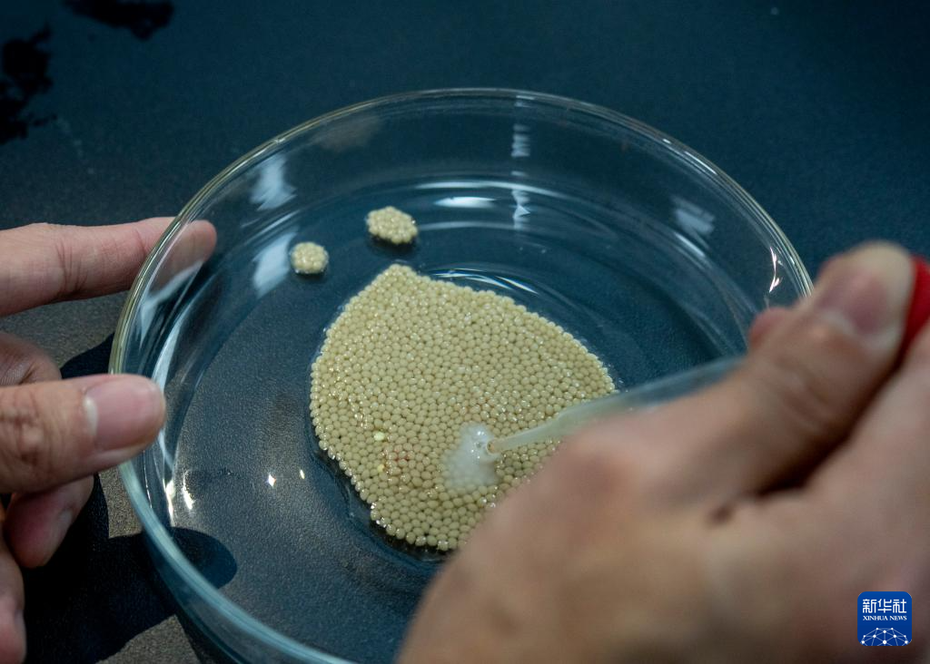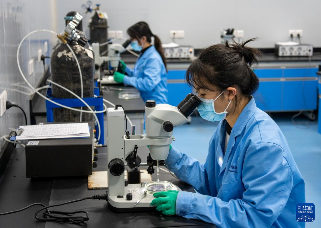11月27日,在西部(重庆)科学城种质创制大科学中心的实验室,研究人员在为野生罗非鱼进行人工采精。