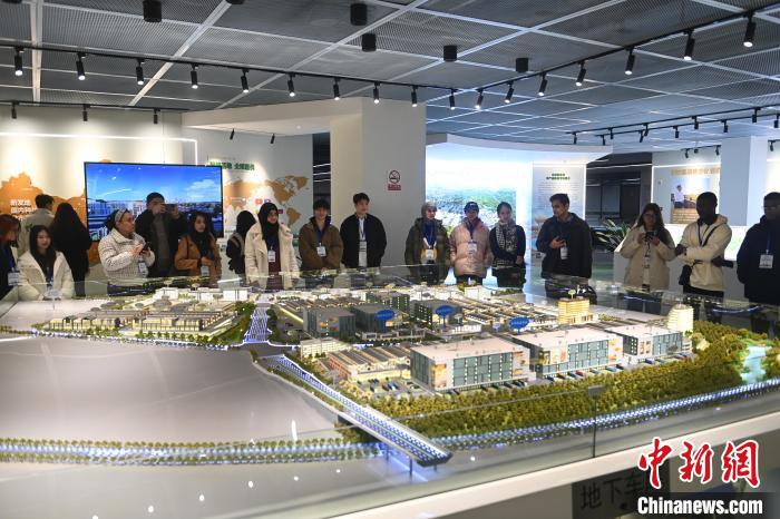 图为留学生在重庆感受西部陆海新通道建设。郑宇摄