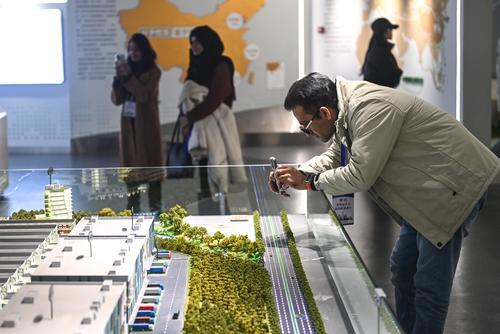 ▲留学生正在东盟商品集采城、新发地东盟国际食品产业园等地,感受西部陆海新通道建设新貌。记者 郑宇 摄
