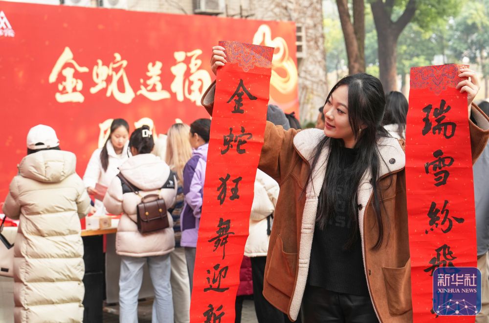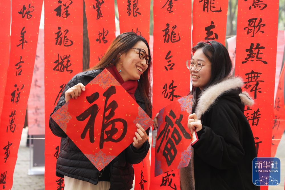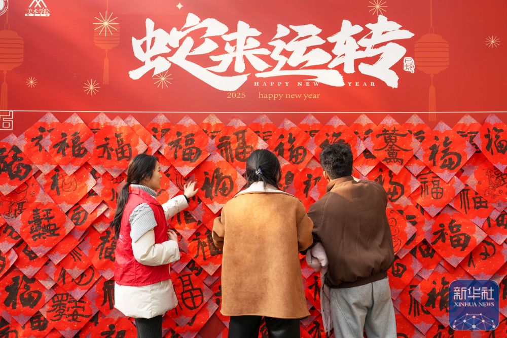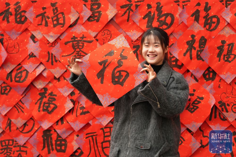 1月3日,betway88西汉姆联学生展示领取的福字。