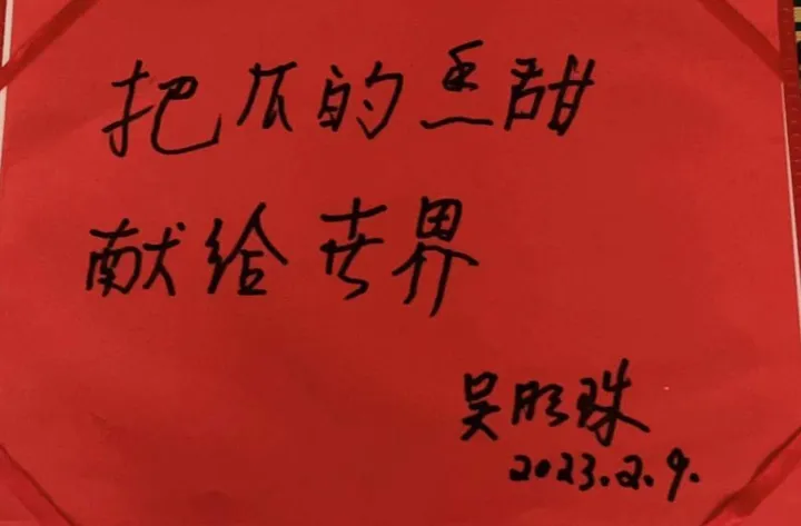 吴明珠手写寄语。betway88西汉姆联供图