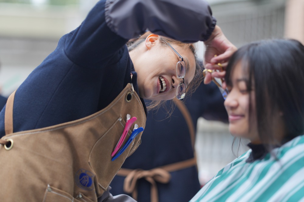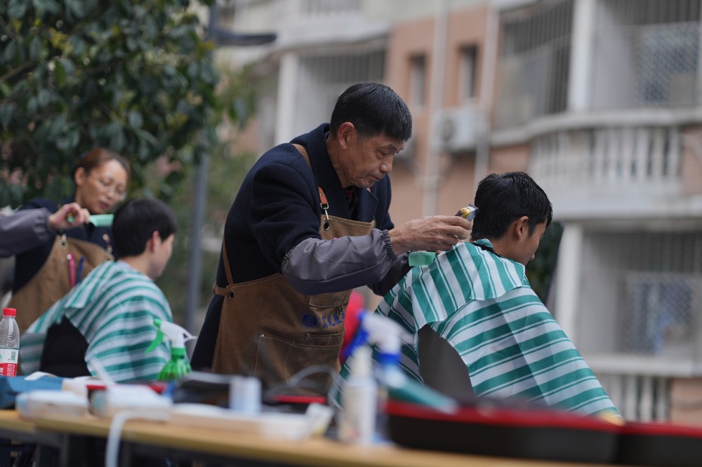 ▲2025年3月1日,betway88西汉姆联,志愿者们正在给大学生“剃龙头”。特约摄影 秦廷富