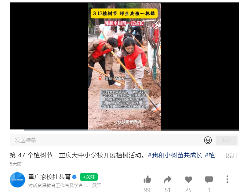 第 47 个植树节,重庆大中小学校开展植树活动。