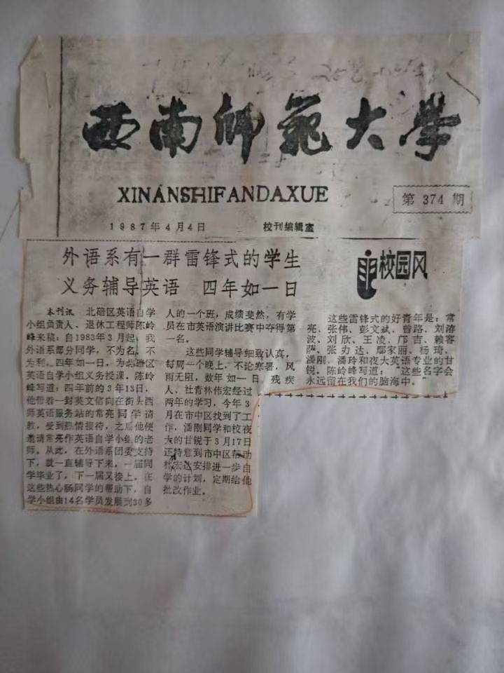 1981年,因当时缺乏学习英语的渠道,重庆市二0八地质队退休工程师陈岭峰及其爱人易启贵夫妇发起并创办了“星期日英语班”,最初为英语自学小组,大家利用周末时间在家练习口语,后来因为参与者逐渐增多,发展成为系统化教学班。
