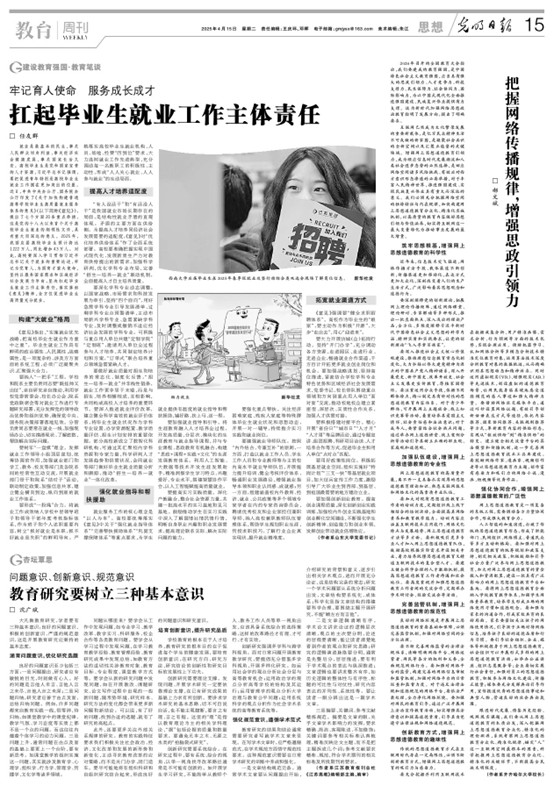 要做好就业质量对招生和培养的常态化、制度化反馈。“招生—培养—就业”并非线性链条,就业工作更非居于末端,而是与招生、培养相辅相成、互相影响,共同构成高校人才培养的重要环节。要深入推进就业评价改革,建立健全科学高效的就业评价体系,将毕业生就业状况作为学科专业设置、办学资源配置、教学质量评估、招生计划安排的重要依据。部分高校新成立了数智化科研机构,可通过其汇聚校内学科资源和专家力量,科学研判人才发展趋势和供需状况,会同就业等部门做好毕业生就业质量分析和跟踪,推动“招生—培养—就业”一体化改革。