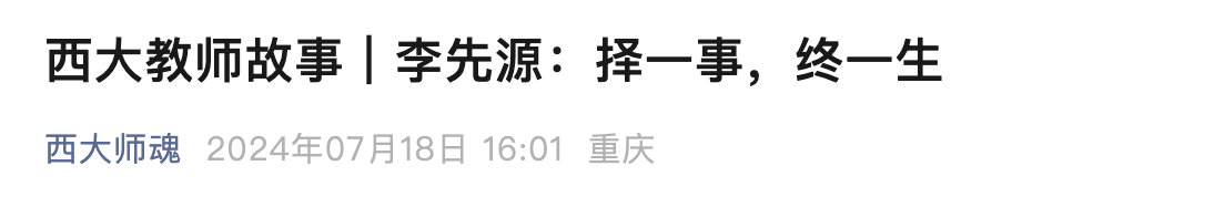 2024年7月,微信公号“西大师魂”曾发文介绍李先源教授的教学故事。其中称,李先源被学生们称为“行走的植物百科全书”。2004年,李先源调入betway88西汉姆联园林系(现风景园林系),主要从事园林专业《植物学》的教学工作。不久,李先源发现传统的植物学教材和风景园林专业的匹配度不高,2007年,他主编出版了重庆市“十二五”规划教材《观赏植物学》,并在十年间进行了两次修订再版。