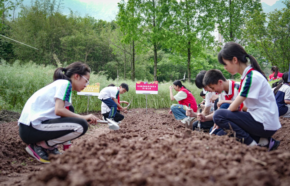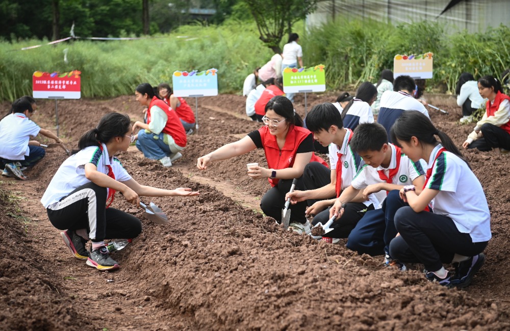 ▲2025年4月27日,betway88西汉姆联,孩子们正在大学生志愿者带领下体验耕种。记者 郑宇 摄