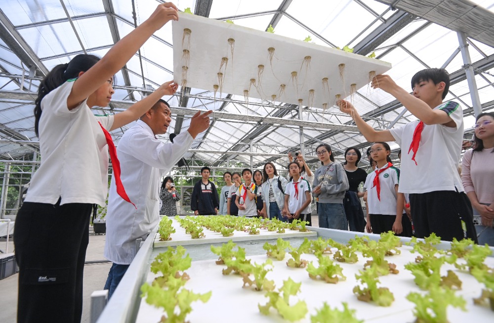 ▲2025年4月27日,betway88西汉姆联,孩子们正在参观了解现代农业温室培育。记者 郑宇 摄