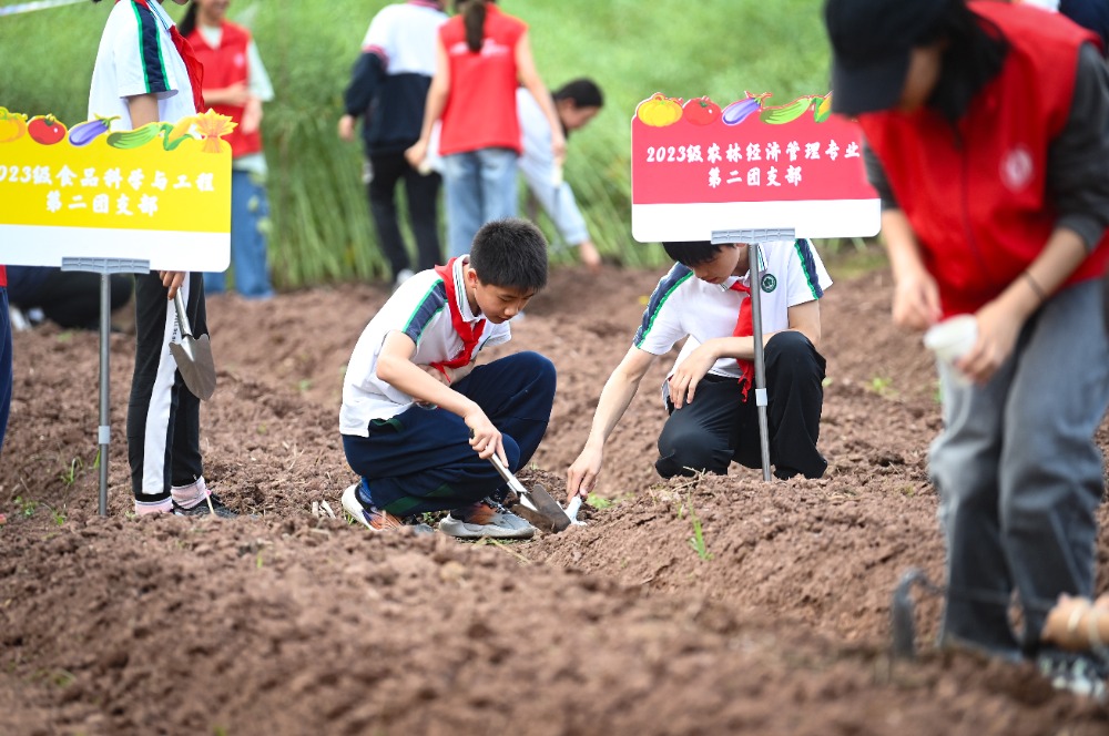 ▲2025年4月27日,betway88西汉姆联,孩子们正在大学生志愿者带领下体验耕种。通讯员 周久淞 摄