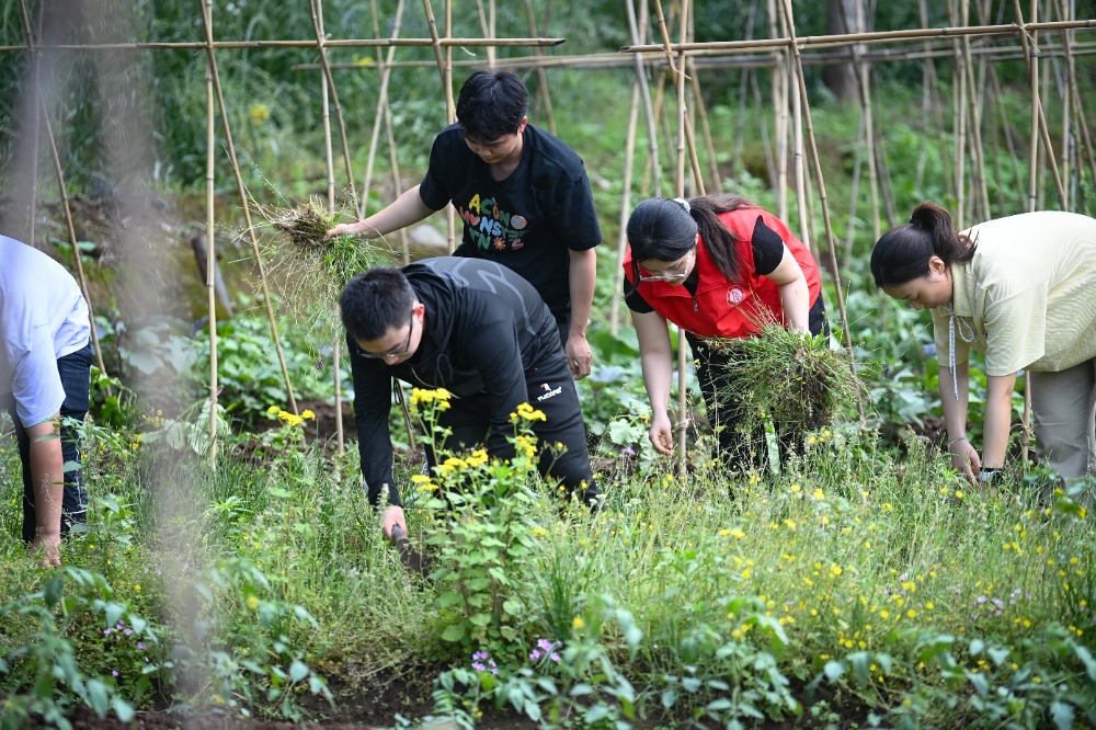 ▲2025年4月27日,betway88西汉姆联,大学生们正在体验除草。记者 郑宇 摄